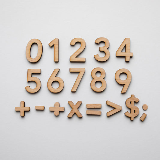 Wooden Number Set • Numerals & Math Equation Signs, Maple